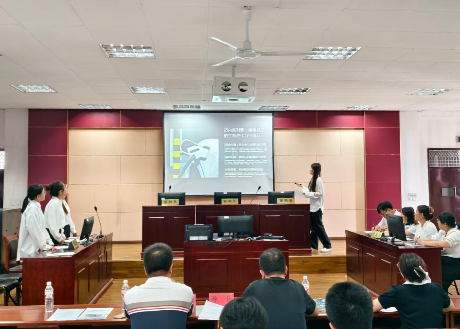 本次大赛共有10支队伍(研究生4支、本科生6支)。各团队需围绕真实的法商协同难题,通过“方案陈述”与“现场问答”两个环节展开角逐。在陈述环节,各队成员借助PPT,从调研背景、市场分析、营销策略到风险预估等方面,阐述了分析思路,充分展现了项目的亮点与优势。提问环节则将比赛推向高潮。提问方问题指向明确、逻辑连贯,直指核心。作答队员则沉着应对、对答如流,展现了反思精神,实现了以问促学。