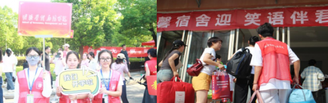 31号上午,新生们从全国各地抵达校园,在我院志愿者的热情引导下前往报到点。为避免拥堵和高温天气,学院提前部署在线上完成多项工作,新生在报到点只需轻松扫描手机上的报道码,并提交录取通知书,便可迅速完成入住手续。在报到点的学院打卡点,新生们也纷纷留下了属于自己的青春印记和美好纪念。