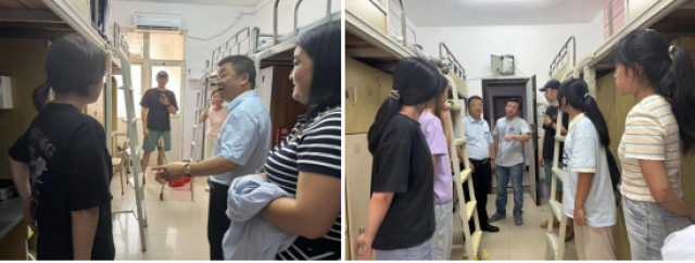 晚上6点,学院领导与全体辅导员深入新生寝室走访,详细了解了新生们的宿舍环境、基础设施和生活习惯。其中,学院领导重点询问了新生的入学适应情况,鼓励他们保持良好的生活习惯,以更加饱满的精神状态投入到新生活中去。领导老师们的到来让新生们感受到学院对大家的关心和支持,同时也激发了同学们对未来学习成长的热情。