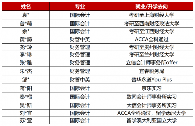 3、ACCA 实验班自开设以来,为国内外知名企业及高校输送了多名财会人才。