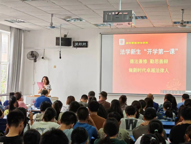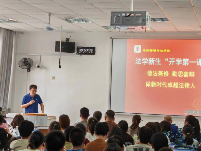 副院长张继恒教授做了总结发言,张教授介绍了经法学院法学系的师资情况、发展现状和面临的挑战,他指出,专业是师生安身立命的根本,全体师生要有法学共同体意识。张教授还介绍了法学专业日常的一些学术活动,未来的发展规划,让各位新生对未来规划有了清晰的方向和指南。