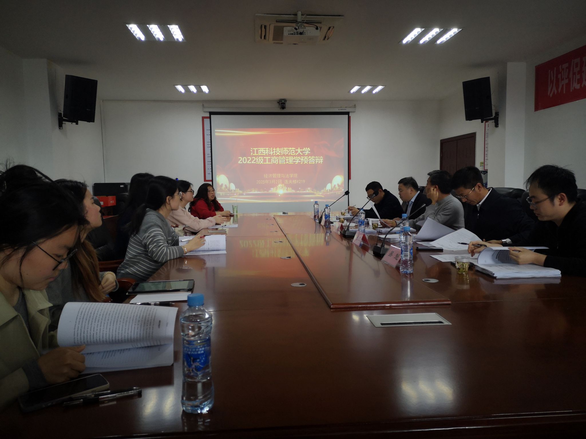 为扎实推进硕士研究生学位论文质量提升,助力研究生顺利通过正式答辩,经济管理与法学院于2月23日至3月6日顺利举行了2025届硕士研究生学位论文预答辩会。此次预答辩分MBA、国际商务、职业技术教育(财经商贸方向)、工商管理学、管理科学与工程五个学科(专业)8场进行,由华中科技大学、南昌大学、江西财经大学、江西农业大学、华东交通大学、南昌航空大学、江西中医药大学等14位校外专家和26位校内专家担任答辩委员会成员,共65名硕士研究生参加预答辩,2023级、2024级硕士研究生到场旁听,活动取得了圆满成功。