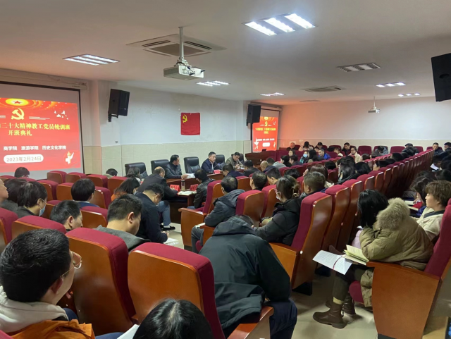 为深入学习贯彻党的二十大精神,经济管理学院党委围绕“对标初心担使命,凝心聚力促发展”主题,开展了为期三天的教工党员轮训班集中学习活动。2023年2月24日晚,校党委委员、副校长李文龙教授应邀来到开班典礼现场并作开班讲话。