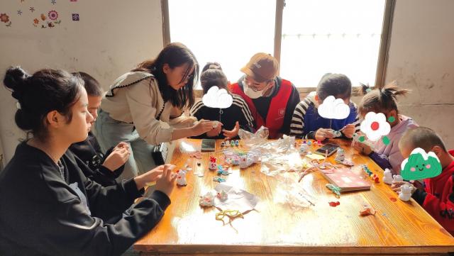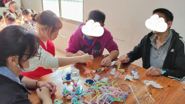 志愿者们秉承着热心做公益的信念积极参与,尽管路途遥远,天气寒冷,志愿者们依然怀着一颗充满热情的心与孩子们交流,为此次活动贡献自己的爱心。活动初始,我院志愿者们用带来的扭扭棒为聋哑学校的孩子们编织了不同形状的手环、发箍等等,并把它们送给孩子们作为礼物。随后,志愿者给孩子们分发塑料小熊,让孩子们给塑料小熊上色。孩子们也都发挥了自己的奇思妙想,创造出了一个个颜色各异的可爱小熊,还将其作为作品保存了下来。在整个活动过程中,聋哑学校的孩子们都十分积极地参与活动,与志愿者们友好热情地互动,活跃和欢乐充满了整个学校。