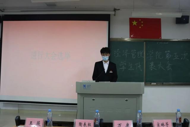 流年溢彩,意气风发。为充分体现和发扬民主,进一步加强学生会干部队伍建设,强化学生组织服务职能,促进学生干部综合素质提升,全面落实我校党委深化学生会改革,根据《中华全国学生联合会章程》、《高校学生代表大会工作规则》、《15vip太阳集团章程》要求,2022年9月27日下午三点,经济管理学院于逸夫楼510教室隆重举办第五次学生代表大会暨学生会换届大会。出席本次会议的有经济管理学院党委书记陶表红,党委副书记万康,学工办主任王薇和学生辅导员宋琳芳以及学院部分学生干部成员,由于疫情防控原因,此次大会线上线下结合召开,共115名学生代表。