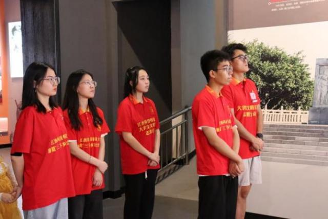 在纪念碑前,小分队成员缓步绕行纪念碑,仔细察看基座上的浮雕,深情缅怀当年党中央和中央红军在苏区浴血奋战的峥嵘岁月。在纪念馆内,小分队成员怀着崇高的敬意向革命先烈敬献花篮并三鞠躬,随后在鲜红的党旗下,全体党员佩戴党员徽章,列队整齐,高举右臂,紧握右拳,重温入党誓词,表明了大家不忘初心跟党走的坚定决心。小队成员在讲解员的带领下参观了革命烈士纪念馆,认真地听取了纪念馆讲解员关于革命先烈的英雄事迹,对艰苦奋斗的长征精神有了更为深刻的理解,也深切地感受到中国革命斗争的艰苦,同时感受到红军长征的艰巨,更体会到无数革命先驱铸就了中国共产党的光荣和伟大。
