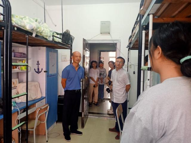 走访过程中,领导及老师们亲切地与同学们打招呼,问候同学们衣食住行是否习惯。对于同学们提出的关于大学生活的疑问,领导及老师们也一一做出详尽的解答。老师们和蔼进人的态度感染着每一位同学,宿舍楼里洋溢着师生间的融融的情谊。此外,领导及老师们还对同学们进行了疫情防控安全教育、防诈骗安全教育、寝室安全教育、人身财产安全教育以及校规校纪等方面的教育,提醒同学们增强自身安全防护意识,提高自身素质。随后,领导及老师们对寝室中可能存在的安全隐患进行了细致的排查。走访中,同学们热情洋溢、积极响应,对我院领导和老师的关心表示感谢,并表示将以更加饱满的热情去迎接崭新的大学生活。