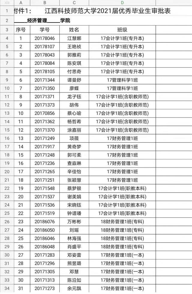 为表彰先进,切实为学校优秀毕业生就业创造条件,根据学校《优秀毕业生评选办法》中有关规定,学校决定开展2021届“优秀毕业生”评定工作。通过各班召开班级民主评议、系统审核工作,学院学工办负责人将优秀毕业生候选人报学院党政联席会议讨论,并将审定后的优秀毕业生候选人在本学院范围内予以公示。如对公示内容有疑问,可直接与负责人联系。
