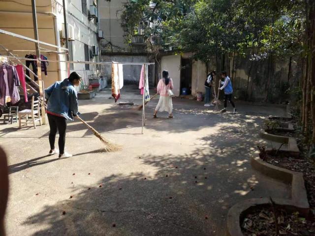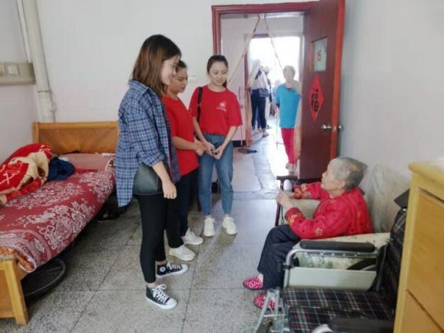 活动中,学生第三党支部全体党员身穿红色上衣,并于胸前佩戴党员徽章。大家分工合作,井然有序,耐心询问老人们的身体状况及生活需求,并帮助他们整理房间与打扫卫生等。