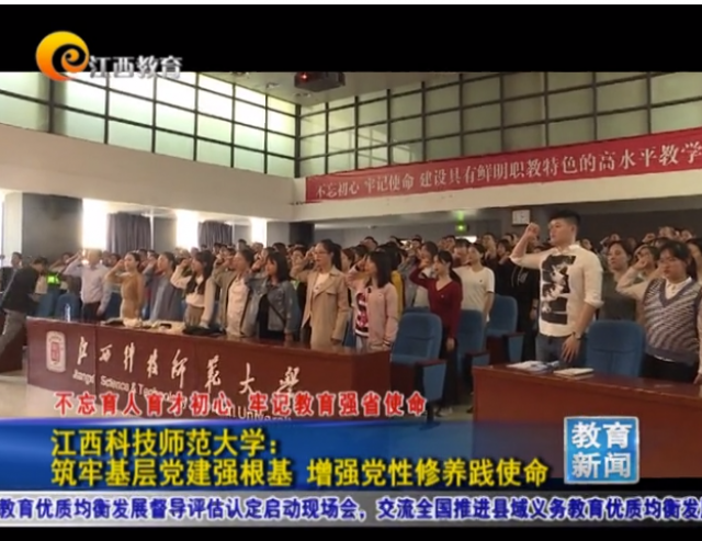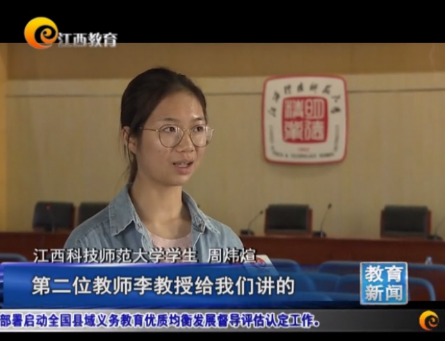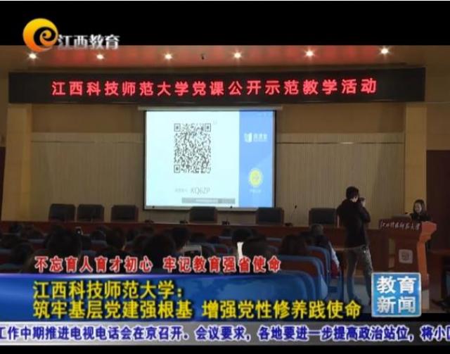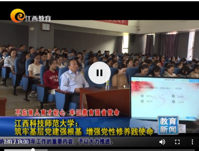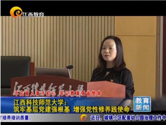 江西教育电视台10月14日《教育新闻》头条报道学院教工二支部书记李丽清讲党课,特别是对于运用《雨课堂》先进教法引入党课教学,极大提高了教学效果,成为深受师生欢迎的授课方式给予了高度肯定,在校内外产生了良好的社会反晌。