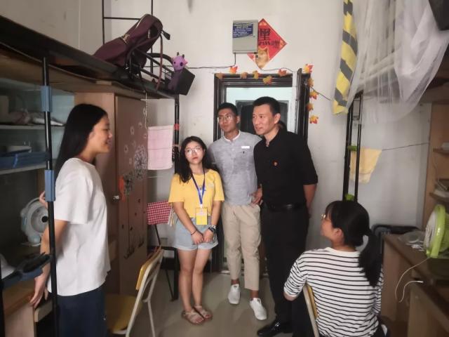 学院领导对每间宿舍逐一走访与新生进行近距离交流,悉心地询问了新生初到大学的感受,是否适应新环境等问题。学院领导提醒要多多关注班级消息,有什么问题或者困惑及时与辅导员联系,寻求帮助,还特别提醒新生要提高安全意识和防盗防骗意识。此外,詹凯书记还看望了来自新疆的少数民族同学并询问有关生活和学习等方面的问题,希望同学能提高自身学习能力,完善自我。