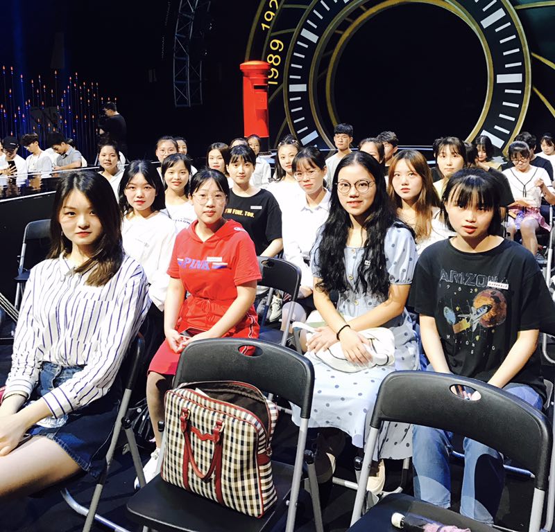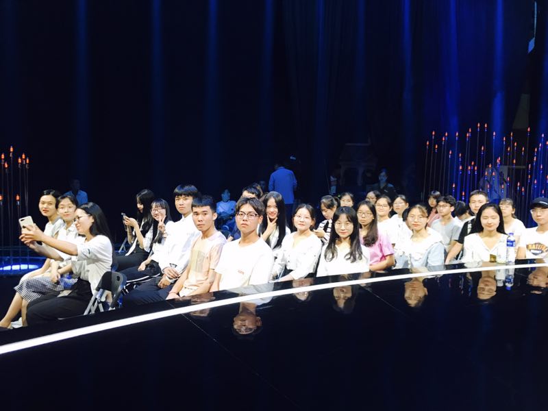到达节目录制现场,同学们排成两列队伍,安静有序地坐到观众席。