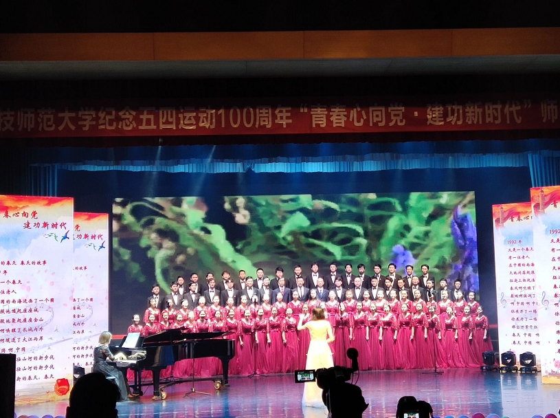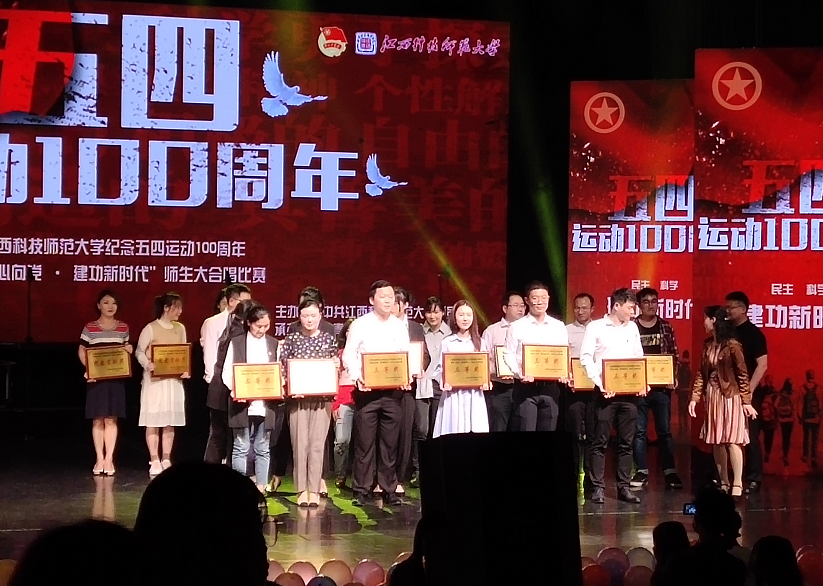 为纪念五四运动100周年,弘扬五四精神,4月23日晚,纪念五四运动100周年“青春心向党·建功新时代”师生大合唱比赛在枫林校区音乐厅隆重举行。校党委委员、副校长朱笃、李玉保、邓弘、刘建飞,校党委委员、纪委书记黄赣华,校党委委员、党委宣传部部长曾传晖,学生工作部(处)部(处)长刘飚、工会副主席金春出席比赛并为获奖队伍颁奖,各学院党委负责人及全校2000余名师生参加、观摩了比赛。比赛由国家一级作曲、江西文化名家、江西省音乐家协会主席葛平波,江西省音乐家协会副主席、驻会副秘书长潘庆蓓,中国声乐家协会常务理事、我校音乐学院院长李广贞担任评委。