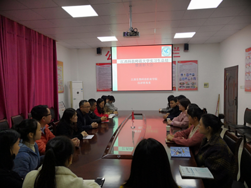 吴兴林书记主持会议。他说,这次大会的召开是一个重要仪式,充分表达了对我院实习生的感谢与期望。他充分肯定了实习生们在这三个月以来对待实习的态度以及做出的努力,并表达了欢迎实习生们以后来江西生物科技职业学院任教。他代表江西生物科技职业学院真诚地希望两校以后能够继续合作,共同进步。