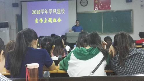 根据我校《加强学风建设专项整治工作实施方案》工作安排,9月7日下午在经济管理学院16国际会计专业一班主题为“营造优良学风 从我做起”的班会上,学工处处长刘飚围绕如何加强学风建设对同学们进行了辅导,辅导员邓雪梅主持班会。