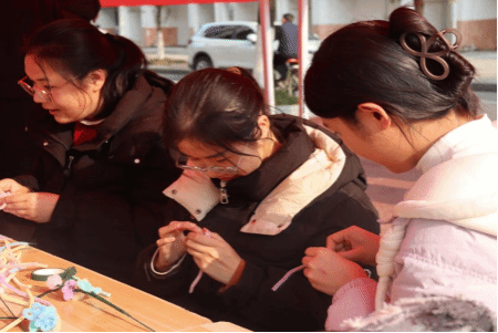 “巧手制造,润心育美”主题活动同期举行着,同学们围坐一处,学习制作扭扭棒花束。当最后一片花瓣在他们的掌心定型时,这些手作绒花,早已凝聚了比春阳更暖的心意,也献上了对女同胞们最真挚的节日祝福。
