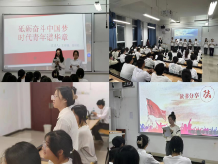活动伊始,全体团员齐唱共青团团歌,紧接着,主持人播放《觉醒年代》的相关短片,并进行了互动,在座团员踊跃发言,讲述了党和人民奋斗史,彰显青年团员的历史素养。接着由红帽子宣讲团为我们带来“砥砺奋斗中国梦,时代青年普华章”的精彩演讲以及《起航》诗歌朗诵,随后通过展示中国经济军事外交方面的相关成就,让我们坚定了听党话,跟党走的信念。最后由各班级代表团员分享主题教育理论篇目的阅读心得,展现出了我院青年团员积极向上的精神风貌。