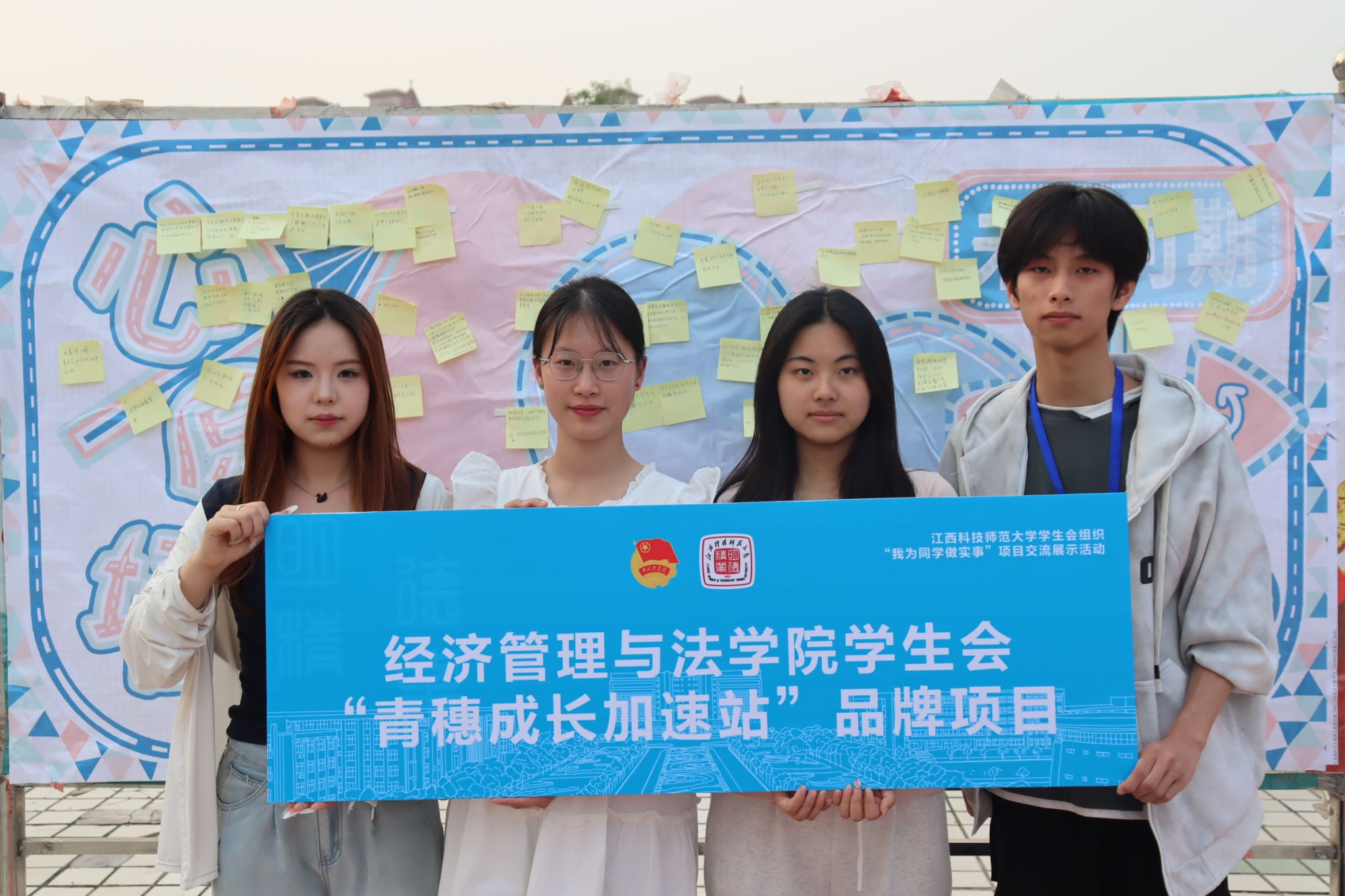 在摆台区域,我院不仅安排工作人员热情介绍“青穗成长加速站”品牌项目,还特别设置了互动活动环节,邀请同学们在便利贴上写下感受与建议,贴满心愿墙。这些举措不仅有效提升了品牌认知度,更收集了大量同学心声,为我院后续精准服务、优化工作提供了宝贵依据。