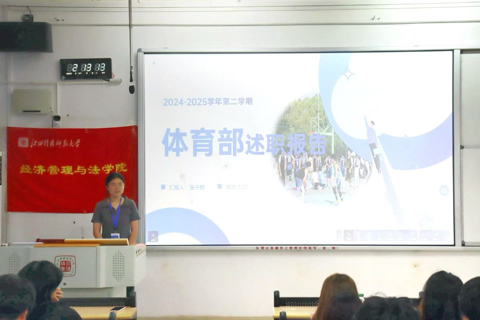 会议在庄严的国歌声中拉开帷幕,全体参会人员肃立齐唱。随后进入述职环节,各部门代表依次登台述职,系统汇报了本学期的工作成果,深入剖析了工作中存在的不足,并针对性地提出了优化提升的具体方案。