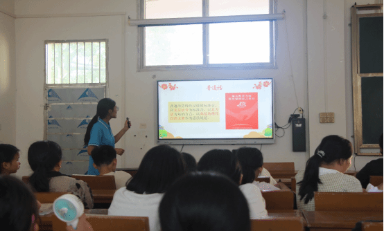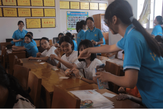 7月3日下午,实践队走进东固民族中学,以“法治护航成长,雅言连接未来”为主题开展活动。普通话推广环节,队员们结合校园场景对比方言与普通话差异,通过“击鼓传花抽任务”“《行行行》绕口令挑战”等游戏,让学生在欢笑中提升表达能力,活动后还发放学习用品鼓励孩子们勤学苦练。