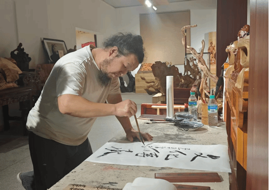 互动环节中,刘节旺挥毫示范书法创作,将造像美学融入笔墨。队员们提笔临摹,在横竖撇捺间感受传统文化的韵律。墨香缭绕间,古老技艺与青春力量碰撞,让“东固传统造像”在新时代焕发新活力。