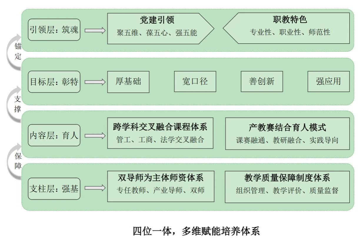 学科交叉,建强课程群。乘数字经济浪潮,立足“需求导向、能力本位、动态迭代”三大核心理念,架设“人工智能+商科”“法治+治理”的跨界桥梁。以会计学、财务管理两个国家级一流建设专业为锚,智能财务、跨境电商、人工智能法学等课程为帆,培育兼具系统思维与法治素养的治理英才。