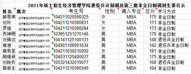 2021年硕士招生经济管理学院退役兵计划调及第三批非全日制调剂生源公示