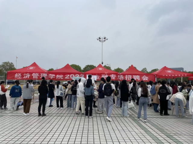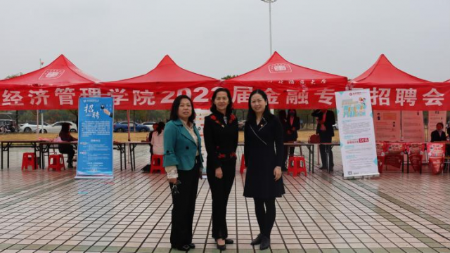 为促进我院广大青年踔厉奋发,勇毅前行,引导学生将个人发展与国家战略需求紧密结合,切实做好我院毕业生就业服务工作,实现高质量就业。经济管理学院于2022年10月27日上午9:30在学校第一食堂广场举办经济管理学院2023届金融专场招聘会,经济管理学院院长罗焰、副书记万康、副院长刘斌与就业专干宋琳芳,以及南昌市政府金融办党组成员、副主任秦娟(99级会计学校友)莅临现场指导工作。