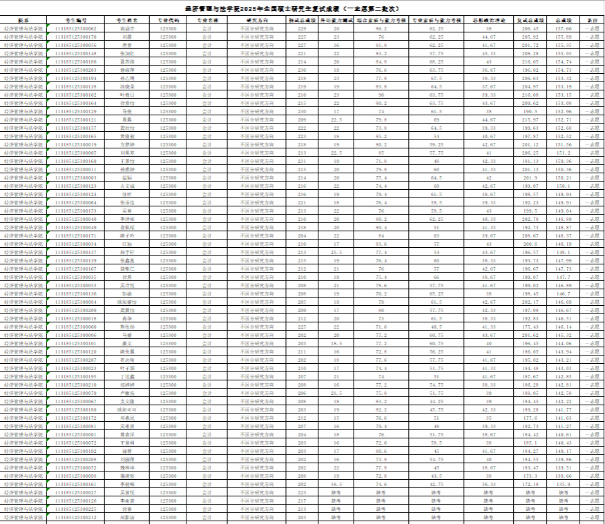 (公示)15VIP太阳集团2025年全国硕士研究生复试成绩(一志愿第二批次)
