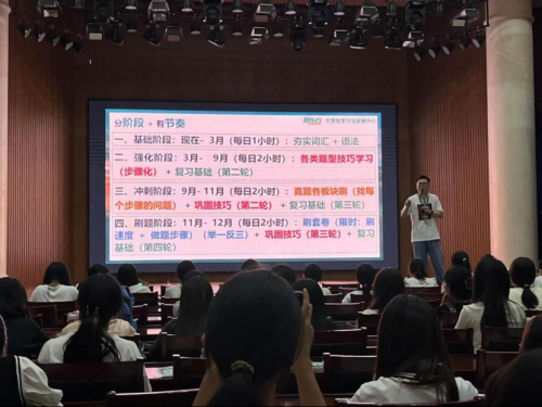 讲座上,林炜煌老师从25届最新考试大纲、考研全流程和考研英语复习计划等多个方面进行了讲解。首先,林炜煌老师指导学生在校期间如何提升本科生内部竞争力,以此丰富简历,加强考研优势;然后,林老师详细介绍了如何合理规划考研基础阶段、强化阶段、冲刺阶段及刷题阶段的时间安排;随后,林炜煌老师系统地讲述了考研英语的复习方法;最后,林炜煌老师针对现阶段考研可能遇到的问题,为同学们进行了现场答疑。