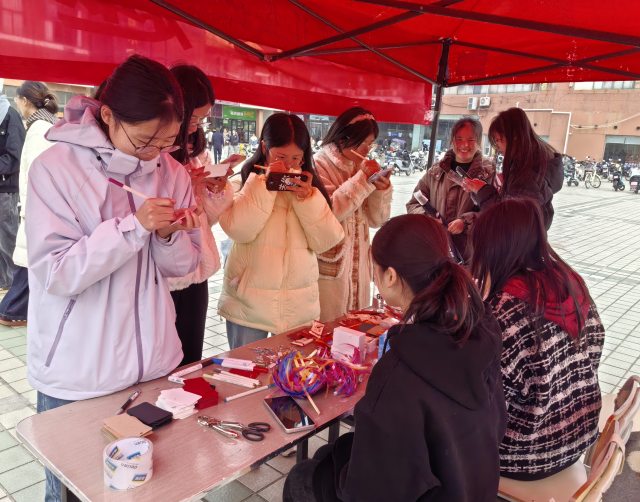 本次活动有四种活动形式,同学们通过彩带留言板、投放情绪小卡片、手工制作树叶书签等将自己的烦恼与压力释放出来,吸引了众多学生参与。在现场,同学们积极主动表达自己的憧憬与祝福,并将自己的心意通过书信传达,获得了广大学生的赞扬与肯定。