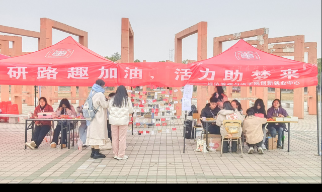为了帮助我院学生缓解考公、考研压力,增强备考信心,15VIP太阳集团于12月9日在西区文化长廊举办了以“研路趣加油,活力助梦来”为主题的考研助力摆台活动。