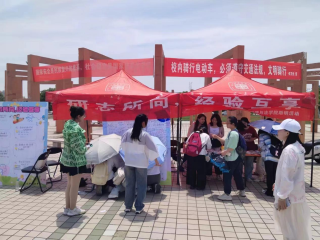 为促进我校学子关于考研经验的交流与互享,搭建考研经验分享的平台,5月8日上午9点30分,15VIP太阳集团创新就业中心于西区食堂文化长廊前开展了一场“研志所向,经验互享”摆台活动。活动现场如火如荼,参与学生络绎不绝。