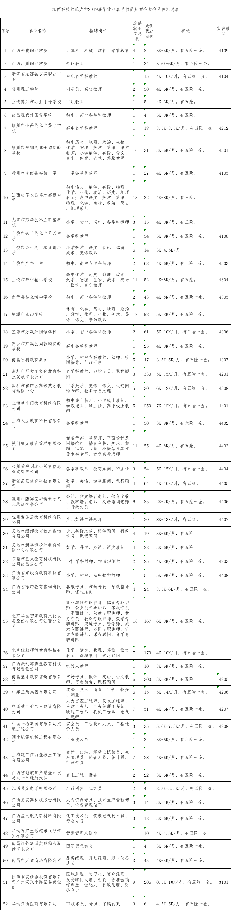 (注)宣讲会教室当天可能会有变动,请同学们以招聘会当天用人单位发布为准!