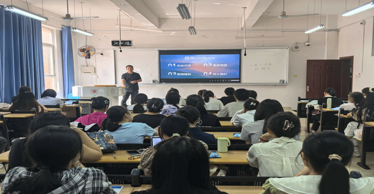 首先,该公司负责人介绍了企业概况以及其主营业务,帮助学生了解公司情况,以便更好选择岗位。随后,介绍了本次招聘会的招聘需求以及战略级人才培养“星九”项目,以便同学们更好地选择岗位。最后,该公司负责人组织开展了现场面试,与同学们逐一交流。