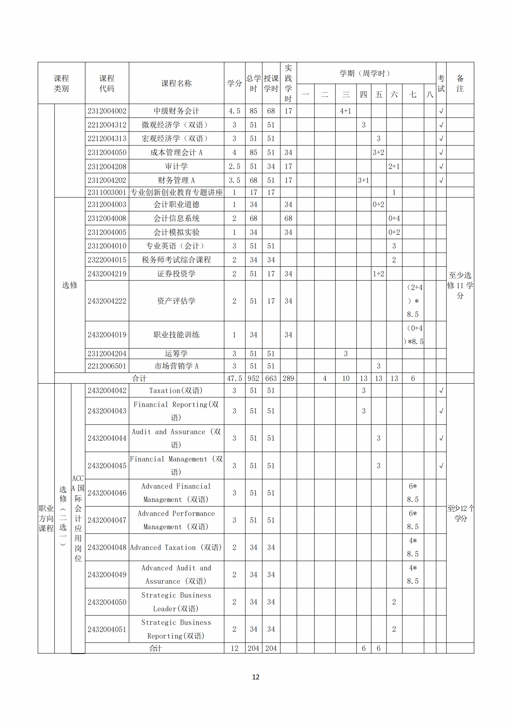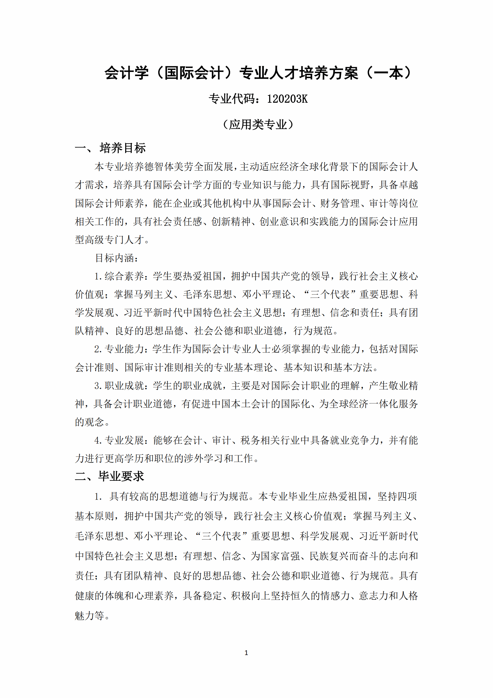 2019版会计学(国际会计)专业人才培养方案(应用类)