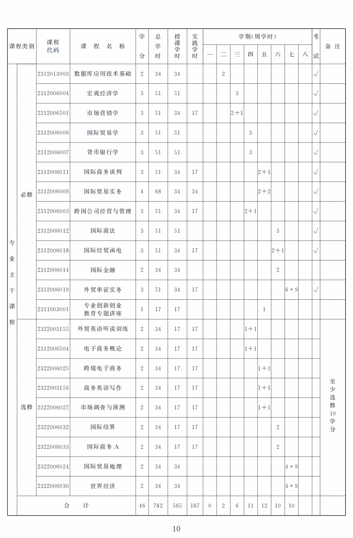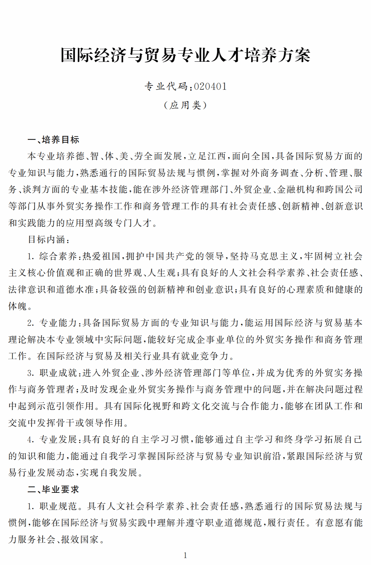 2019版国际经济与贸易专业人才培养方案(应用类)