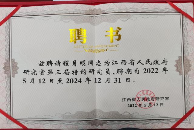2022年7月19日,江西全省决策咨询工作会议暨省政府研究室第三届特约研究员授聘仪式,在江西省行政中心西楼第三会议厅举行。省...