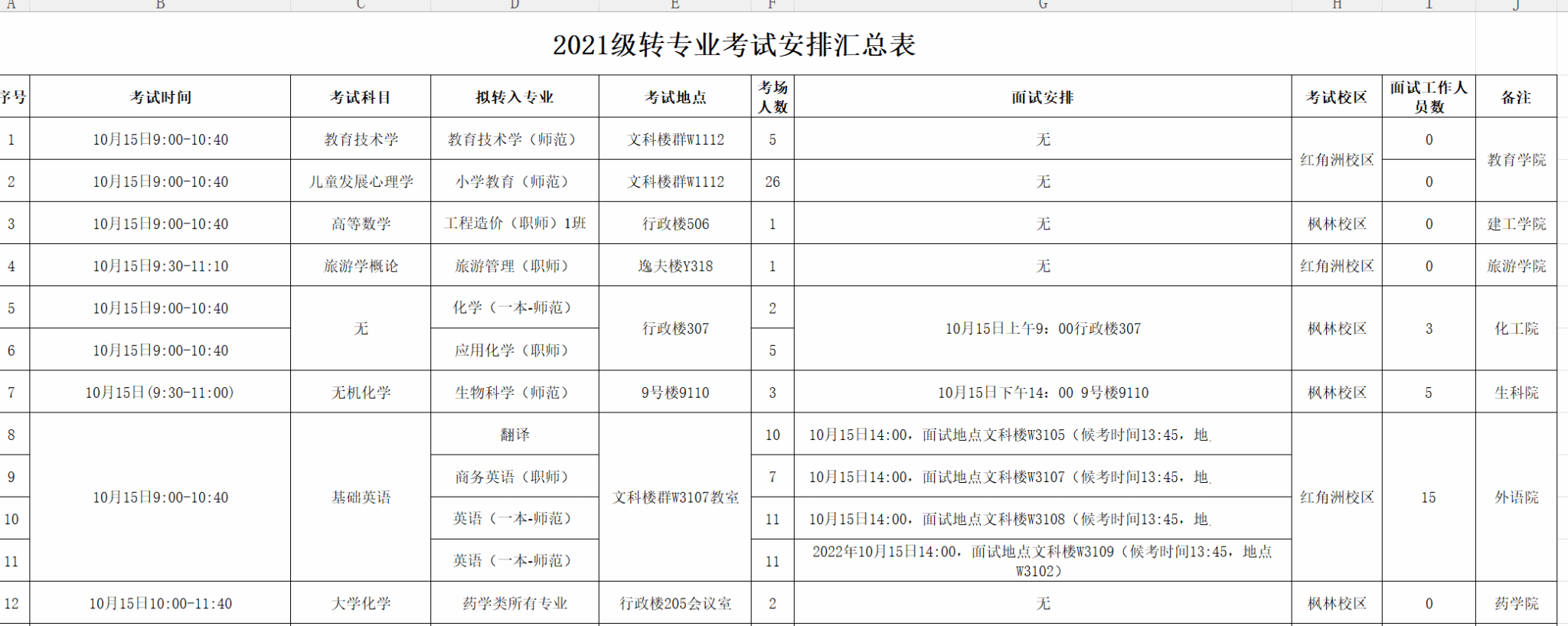 经济管理学院2021级转专业考试安排汇总表.xls