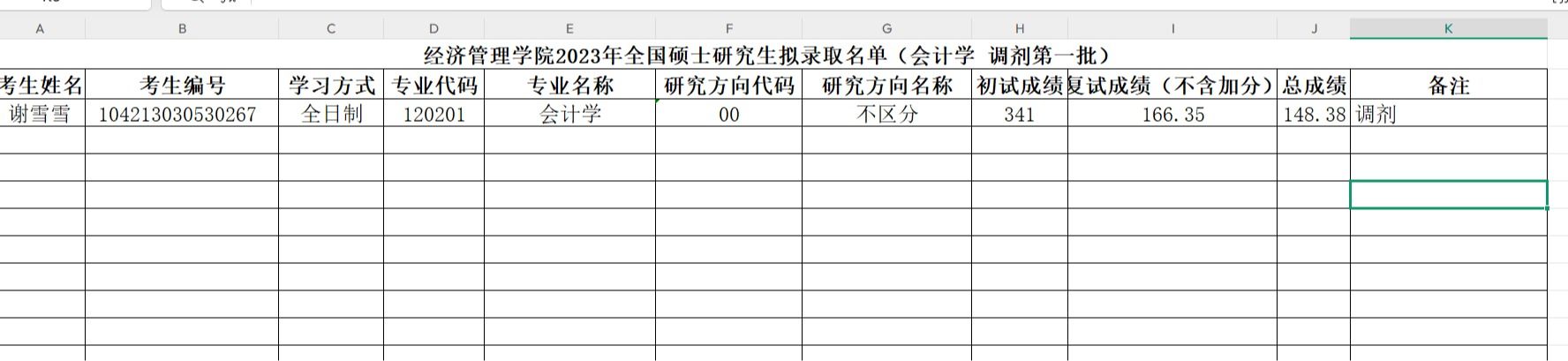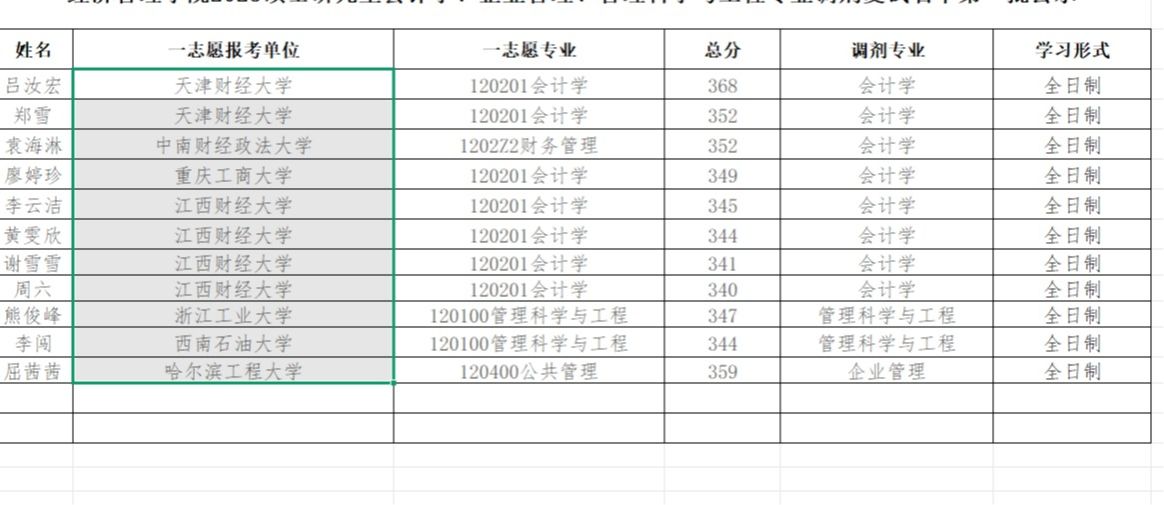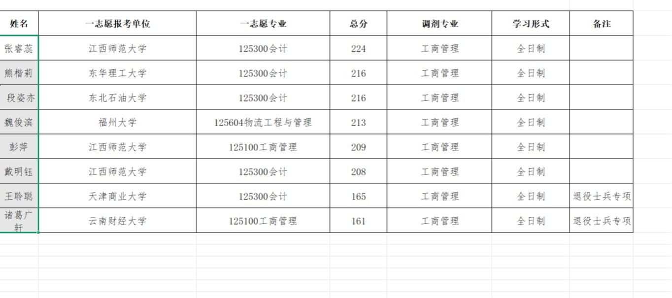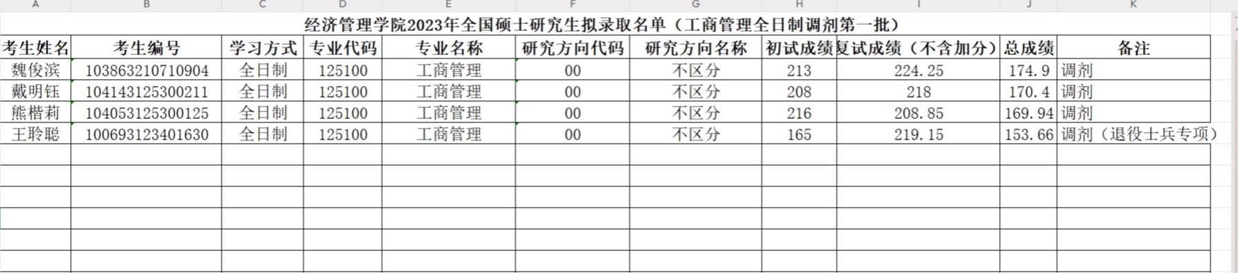 拟录取(工商管理全日制) - 调剂第一批.xlsx