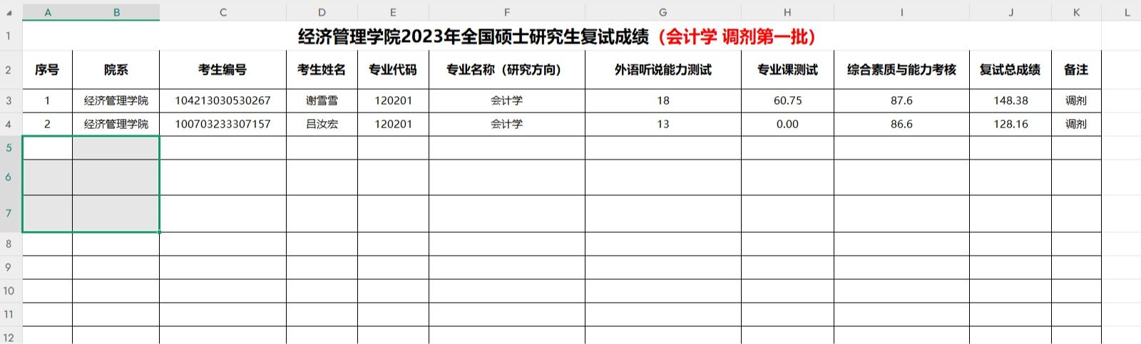 经济管理学院2023硕士研究生会计学、企业管理、管理科学与工程专业调剂复试名单第一批公示.xlsx