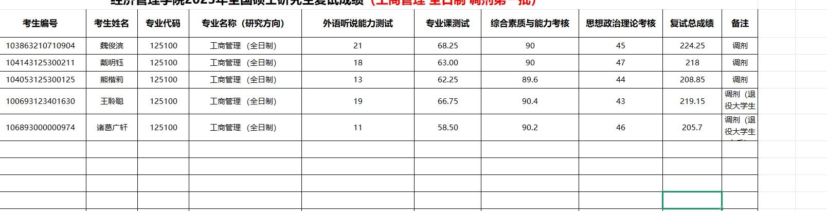 复试成绩公布(工商管理 全日制)调剂第一批.xlsx