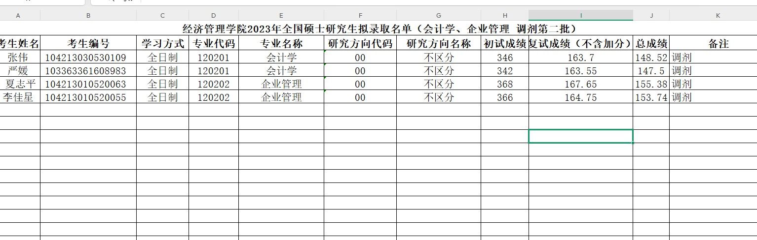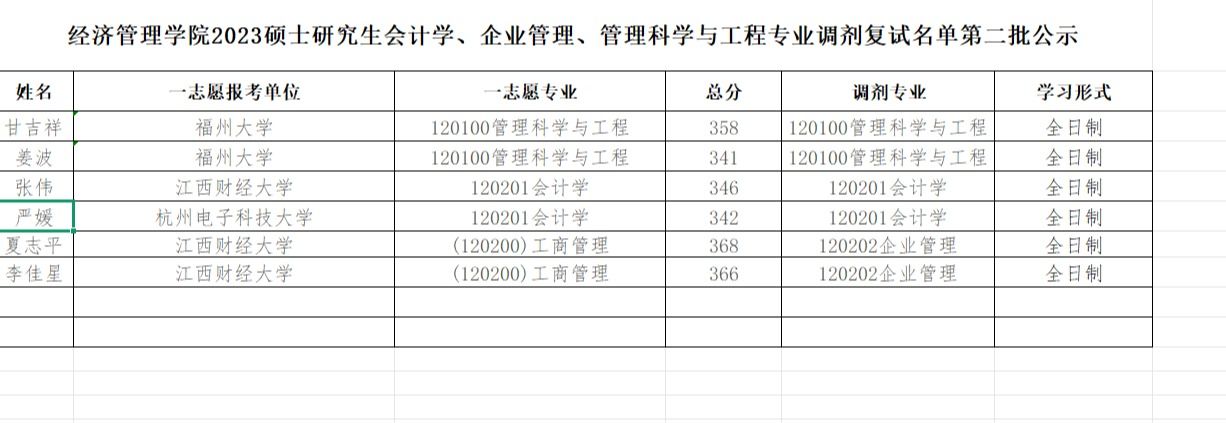 经济管理学院2023硕士研究生会计学、企业管理、管理科学与工程专业调剂复试名单第二批公示.xlsx