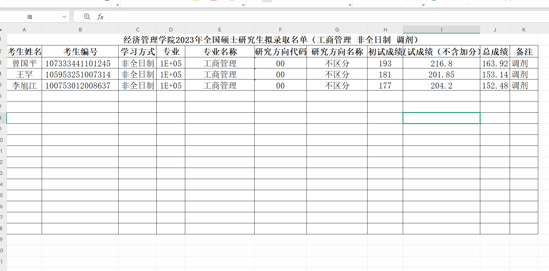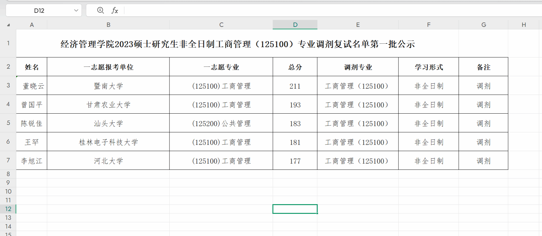拟录取(工商管理 非全) - 调剂第一批.xlsx