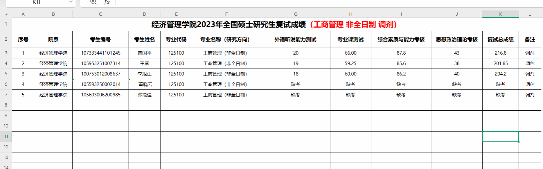 复试成绩公布(工商管理 非全)调剂第一批.xlsx