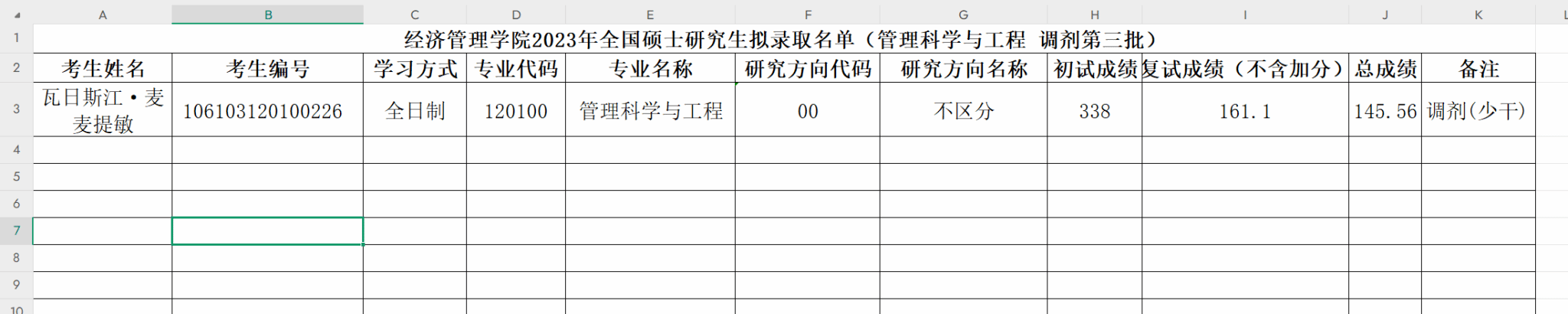 拟录取(管理科学与工程) - 调剂第三批.xlsx