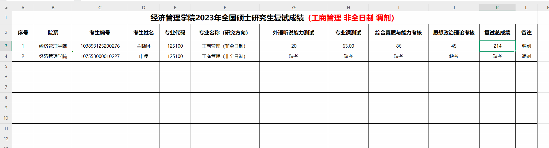 复试成绩公布(工商管理 非全)调剂第二批.xlsx