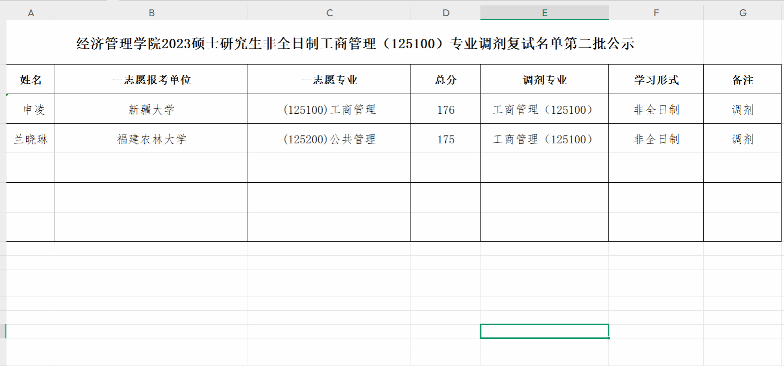 拟录取(工商管理 非全) - 调剂第二批.xlsx