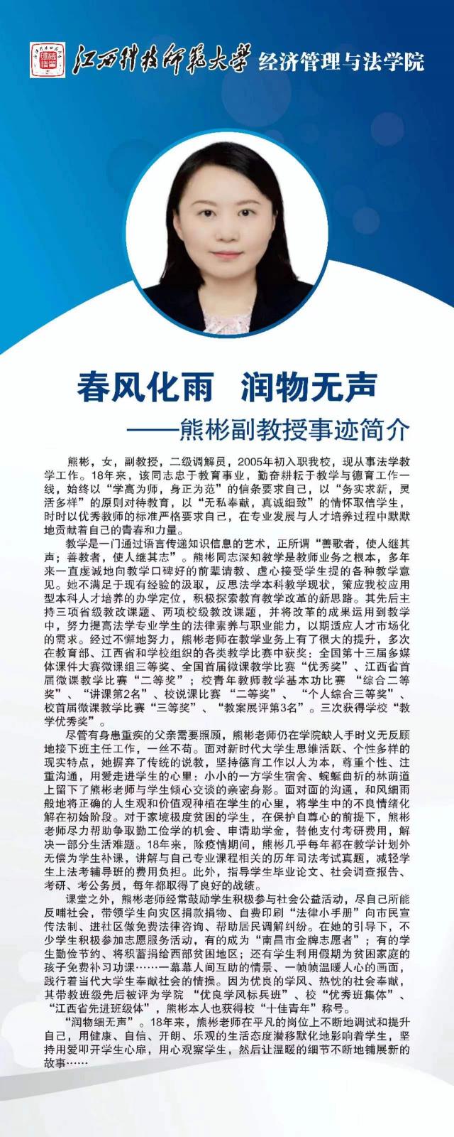 【教师节专辑】熊彬副教授先进事迹