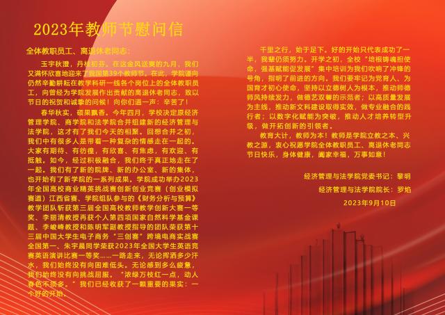 【2023】教师节致全体教职员工、离退休老同志的慰问信